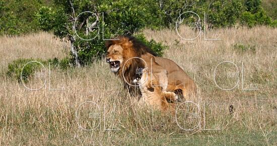 Lion d'Afrique, panthera leo, Accouplement, Parc du Masai Mara au Kenya