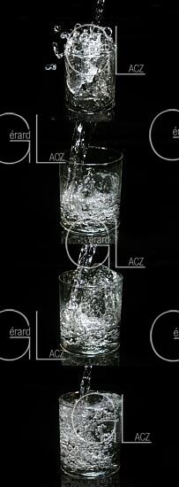 Eau qui Coule dans un Verre sur Fond Noir
